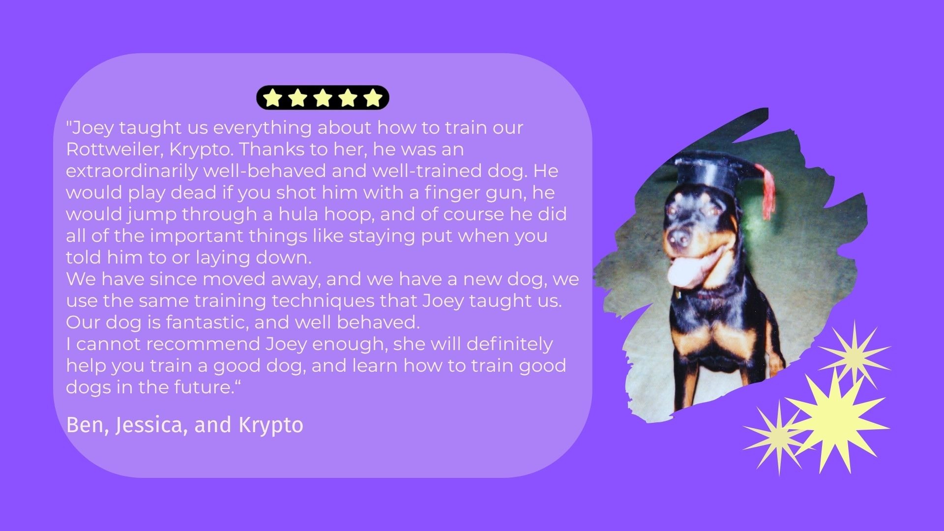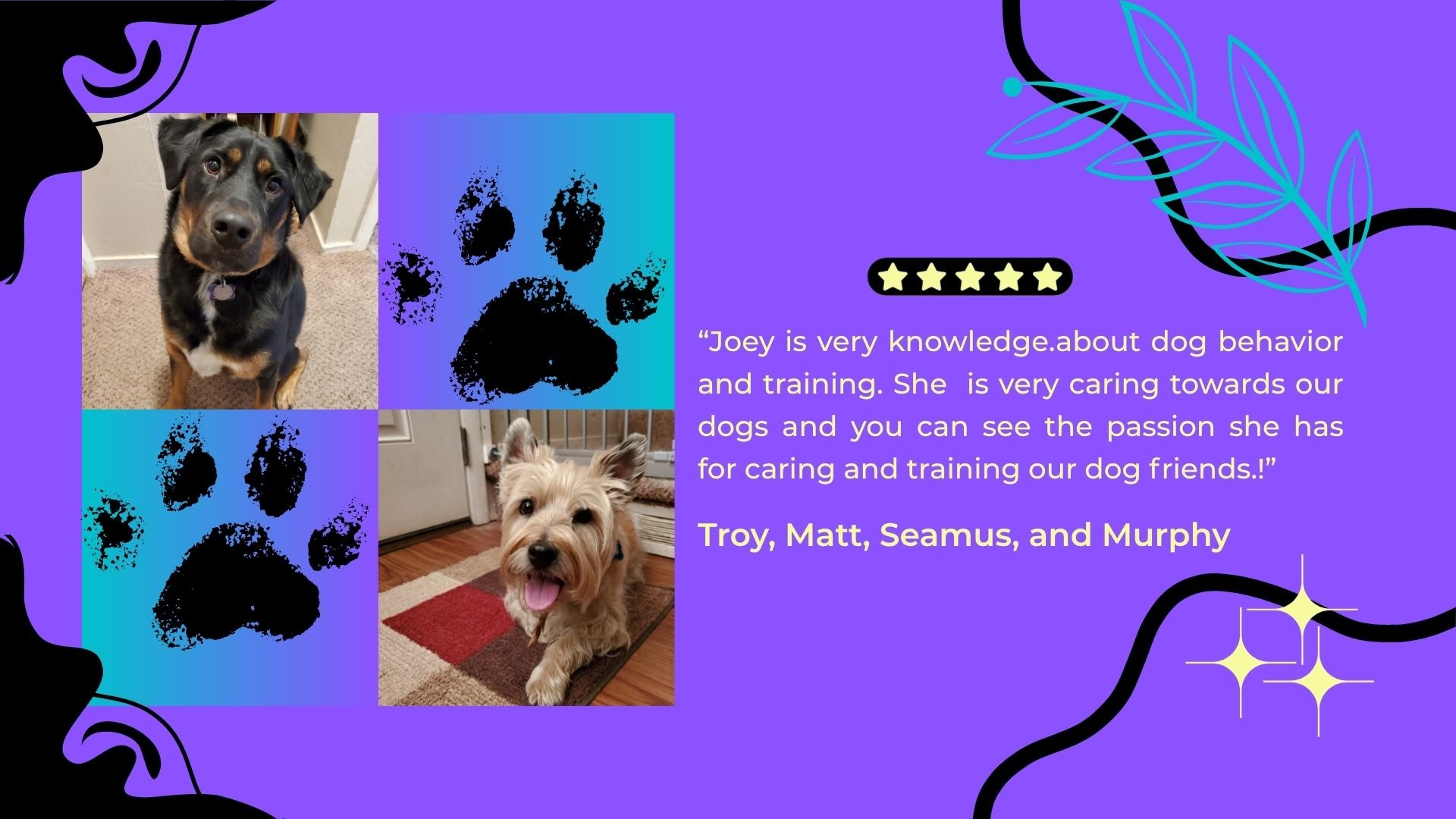 Scroll below to see what our clients say about Doggy Einstein Training...