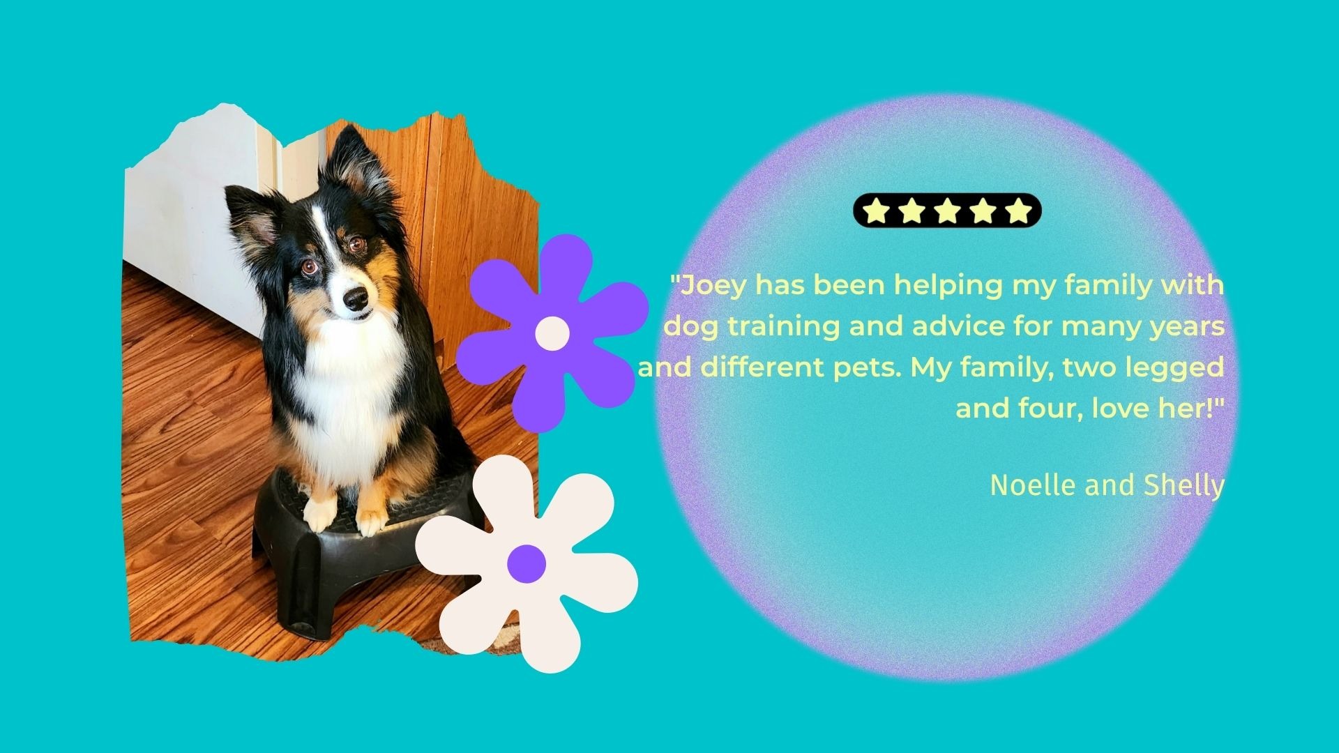 My name is Joey. I am a Certified Professional Dog Trainer, ready to share over 25 years of experience working with dogs. I want to hear about what is going on with your pup... so that I can HELP to IMPROVE your lives together using humane and gentle techniques.